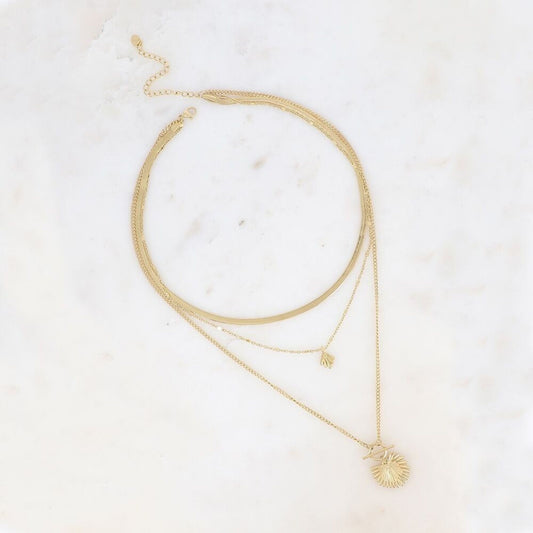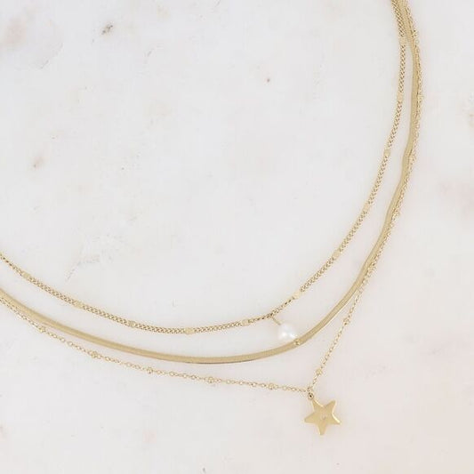 Collier - en Acier Inoxydable Triple Chaîne Élégante